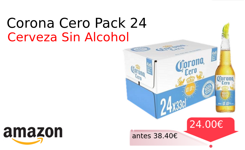 Más de un 30% 🚀 Corona Cero Pack 24❗️🆕 #Amazon 🇪🇸 📛Precio Ya 24.00€❗️ (PVP: +38.40€) ✨Cerveza refrescante con ingredientes cien por cien naturales y sabor auténtico ideal para cualquier momento del día con diseno innovador y funcional. cholloya.com/CORONA_CERO_24