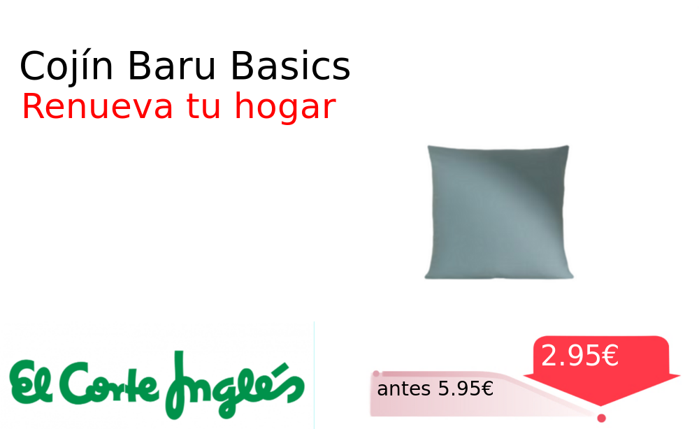 Mitad de precio✂️ Cojín Baru Basics❗️🆕 #Elcorteingles 📛Precio Ya 2.95€❗️ (PVP: +5.95€) ✨Funda de cojín de la marca Basics ideal para renovar el aspecto de tu sofá o cama con un diseño sencillo y versátil. cholloya.com/BASICS_COJIN_BA