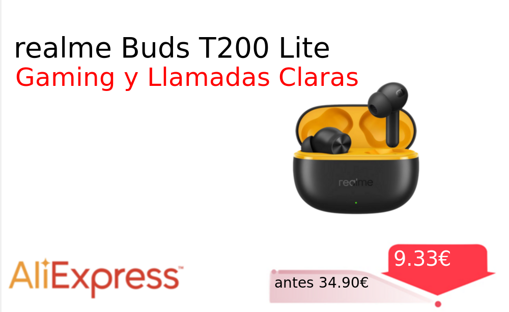 Mitad de precio✂️ realme Buds T200 Lite❗️🆕 #AliExpress 📛Precio Ya 9.33€❗️ (PVP: +34.90€) ✨Auriculares inalámbricos con cuatro micrófonos y cancelación de ruido AI ENC para llamadas nítidas Batería de larga duración y latencia ultra baja ideales. cholloya.com/REALME_T200_LIT