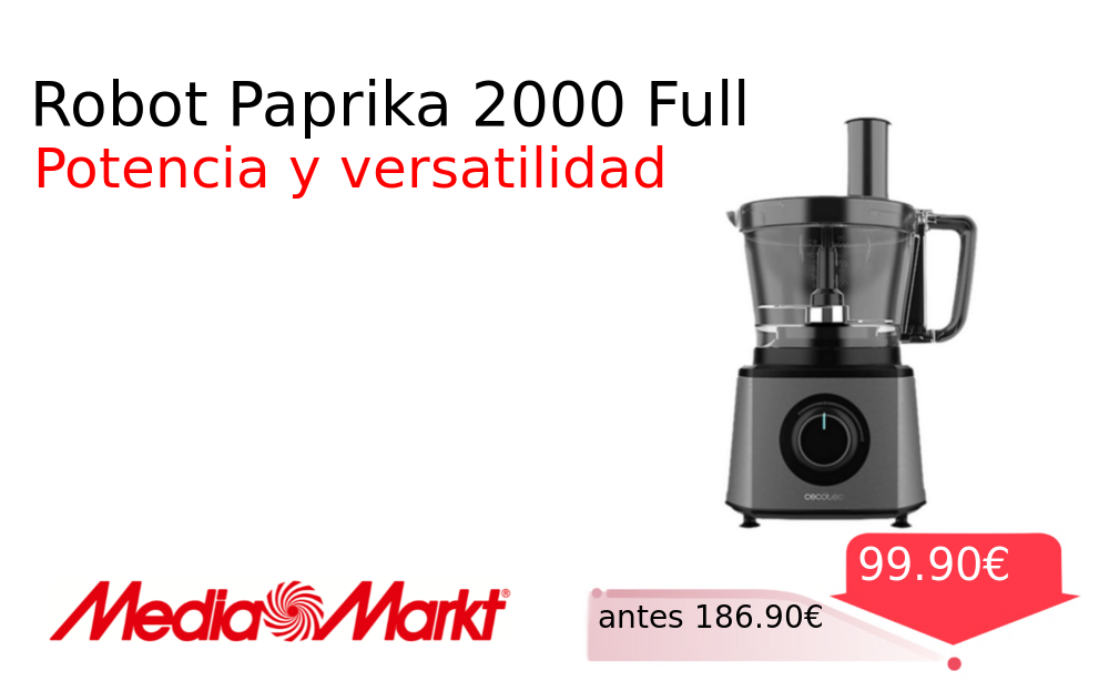 40% 📉 Vaya descuentazo‼‼ Robot Paprika 2000 Full❗️🆕 #MediaMarkt 📛Precio Ya 99.90€❗️ (PVP: +186.90€) ✨Robot de cocina con motor de 2000 W para máxima potencia Versátil y eficiente facilita la preparación de tus recetas con un diseño moderno. cholloya.com/CECOTEC_PAPRIKA