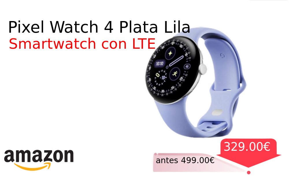 Más de un 30% 🚀 Pixel Watch 4 Plata Lila❗️🆕 #Amazon 🇪🇸 📛Precio Ya 329.00€❗️ (PVP: +499.00€) ✨Smartwatch Android con caja de aluminio plateada y correa deportiva lila Incluye seguimiento de actividad física y asistencia avanzada con tecnología Gemini. cholloya.com/PIXEL_WATCH_4_L