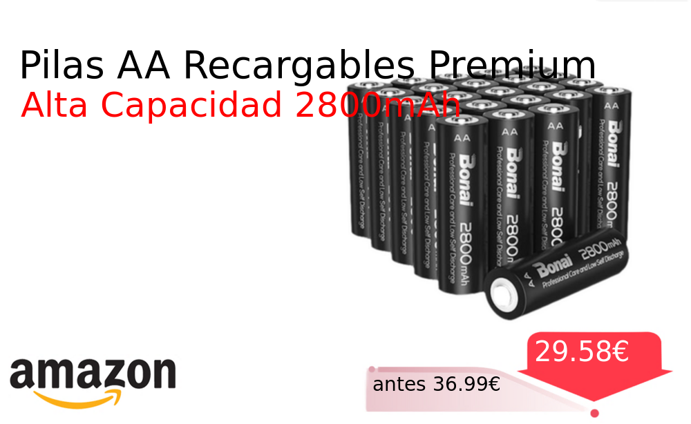 Buen Precio✨ Pilas AA Recargables Premium❗️🆕 #Amazon 🇪🇸 📛Precio Ya 29.58€❗️ (PVP: +36.99€) ✨Pilas recargables AA de alta capacidad y baja autodescarga Ideales para un uso intensivo y duradero en múltiples dispositivos electrónicos del hogar. cholloya.com/BONAI_AA_2800MA