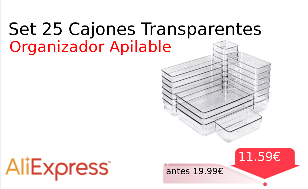 40% 📉 Vaya descuentazo‼‼ Set 25 Cajones Transparentes❗️🆕 #AliExpress 📛Precio Ya 11.59€❗️ (PVP: +19.99€) ✨Organiza tus pequeños objetos con este práctico set de cajones transparentes Perfecto para manualidades oficina o el hogar Apilables y de fácil acceso. cholloya.com/CAJONES_ORGANIZ