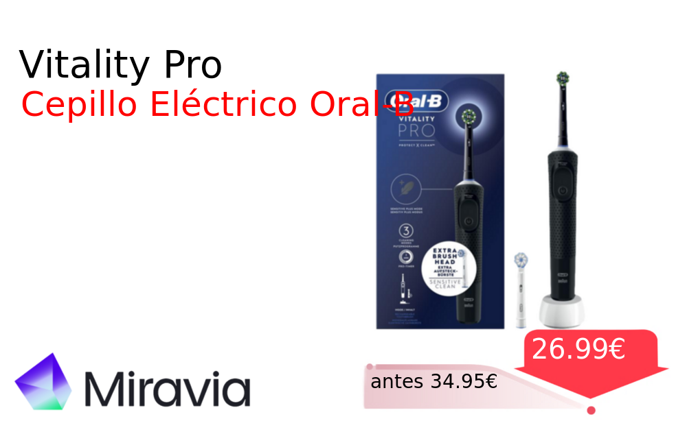 Buen Precio✨ Vitality Pro❗️🆕 #Miravia 📛Precio Ya 26.99€❗️ (PVP: +34.95€) ✨Cepillo eléctrico con tecnología oscilante-rotacional para una limpieza superior Incluye dos cabezales y cuenta con garantía oficial europea con diseno innovador y funcional. cholloya.com/ORALB_VITALITY_