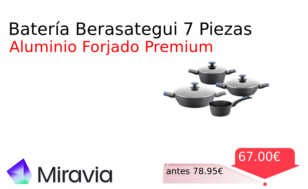 Buen Precio✨ Batería Berasategui 7 Piezas❗️🆕 #Miravia 📛Precio Ya 67.00€❗️ (PVP: +78.95€) ✨Batería de cocina de aluminio forjado con 7 piezas y antiadherente libre de PFOA Apta para inducción e incluye tapas de cristal recomendada por. cholloya.com/MONIX_BERASATEG