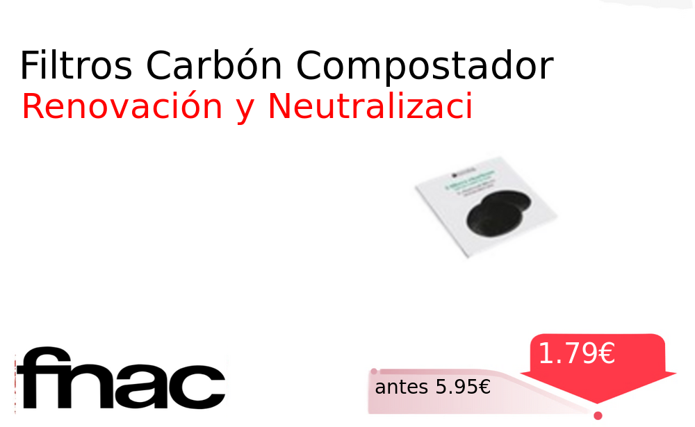Mitad de precio✂️ Filtros Carbón Compostador❗️🆕 #fnac 📛Precio Ya 1.79€❗️ (PVP: +5.95€) ✨Dos filtros de carbón activo para tu compostador de cocina Renuevan el aire neutralizan olores y mantienen un ambiente fresco de forma natural. cholloya.com/FILTROS_CARBON