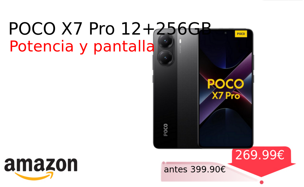 Más de un 30% 🚀 POCO X7 Pro 12+256GB❗️🆕 #Amazon 🇪🇸 📛Precio Ya 269.99€❗️ (PVP: +399.90€) ✨Smartphone con pantalla AMOLED 1 5K de 120Hz y procesador Dimensity 8400-Ultra Cámara principal de 50 MP y carga rápida de 90W Versión española. cholloya.com/POCO_X7_PRO