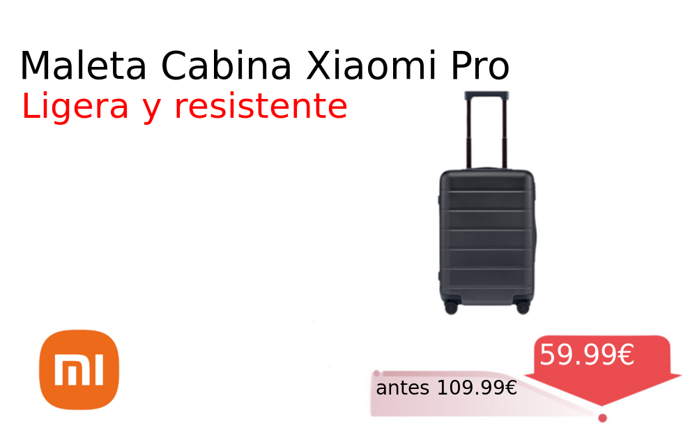 40% 📉 Vaya descuentazo‼‼ Maleta Cabina Xiaomi Pro❗️🆕 #Mi 📛Precio Ya 59.99€❗️ (PVP: +109.99€) ✨Maleta de cabina robusta y ligera fabricada en policarbonato resistente Diseño elegante en negro con sistema de cierre TSA y ruedas silenciosas de 360. cholloya.com/XIAOMI_LUGGAGE_