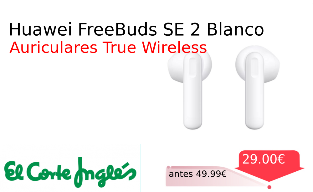 40% 📉 Vaya descuentazo‼‼ Huawei FreeBuds SE 2 Blanco❗️🆕 #Elcorteingles 📛Precio Ya 29.00€❗️ (PVP: +49.99€) ✨Auriculares inalámbricos con sonido claro y conexión Bluetooth estable Diseño ergonómico y ligero para un uso diario cómodo durante horas. cholloya.com/HUAWEI_FREEBUDS
