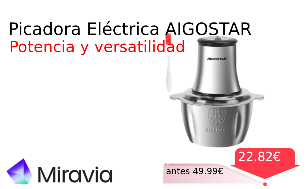 Mitad de precio✂️ Picadora Eléctrica AIGOSTAR❗️🆕 #Miravia 📛Precio Ya 22.82€❗️ (PVP: +49.99€) ✨Picadora eléctrica con cuchillas de acero inoxidable y capacidad de 1 8 litros Dos velocidades para procesar frutas verduras y todo tipo de alimentos. cholloya.com/AIGOSTAR_PICADO