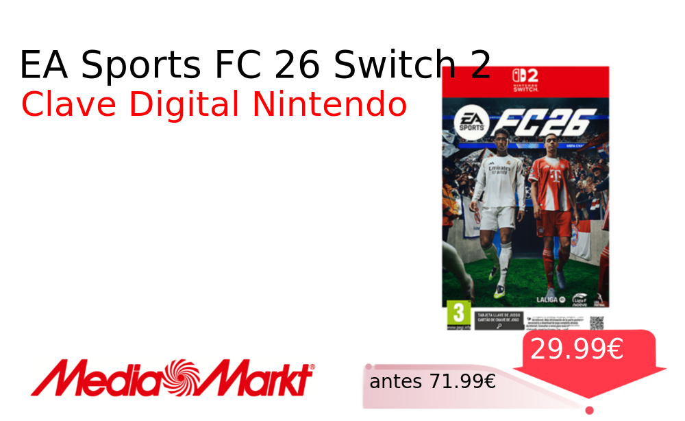 Mitad de precio✂️ EA Sports FC 26 Switch 2❗️🆕 #MediaMarkt 📛Precio Ya 29.99€❗️ (PVP: +71.99€) ✨Vive el fútbol definitivo El Club es tuyo con una experiencia de juego renovada creada a partir del feedback de la comunidad. cholloya.com/EA_FC26_SWITCH2