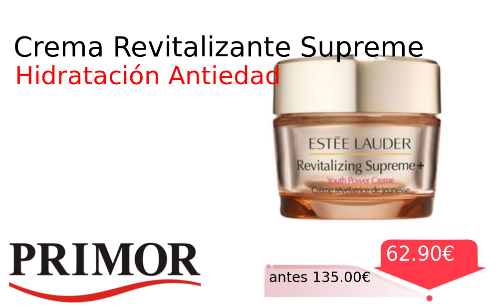 Mitad de precio✂️ Crema Revitalizante Supreme❗️🆕 #Primor 📛Precio Ya 62.90€❗️ (PVP: +135.00€) ✨Crema antiedad de Estée Lauder que hidrata intensamente y revitaliza la piel aportando firmeza y un aspecto más joven y radiante. cholloya.com/ESTEE_LAUDER_SU
