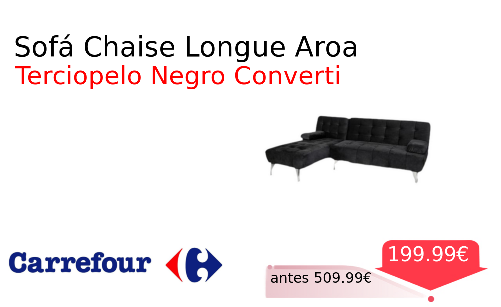 Mitad de precio✂️ Sofá Chaise Longue Aroa❗️🆕 #Carrefour 📛Precio Ya 199.99€❗️ (PVP: +509.99€) ✨Sofá chaise longue de terciopelo negro tres plazas convertible en cama L intercambiable para adaptarse a cualquier espacio con estilo ecléctico y mediterráneo. cholloya.com/SOFA_CHAISE_ARO