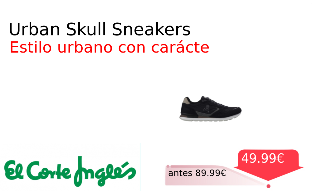 40% 📉 Vaya descuentazo‼‼ Urban Skull Sneakers❗️🆕 #Elcorteingles 📛Precio Ya 49.99€❗️ (PVP: +89.99€) ✨Zapatillas urbanas con un diseño audaz de calavera en el lateral confeccionadas con detalles en ante para un estilo único y duradero. cholloya.com/SNEAKERS_SKULL_