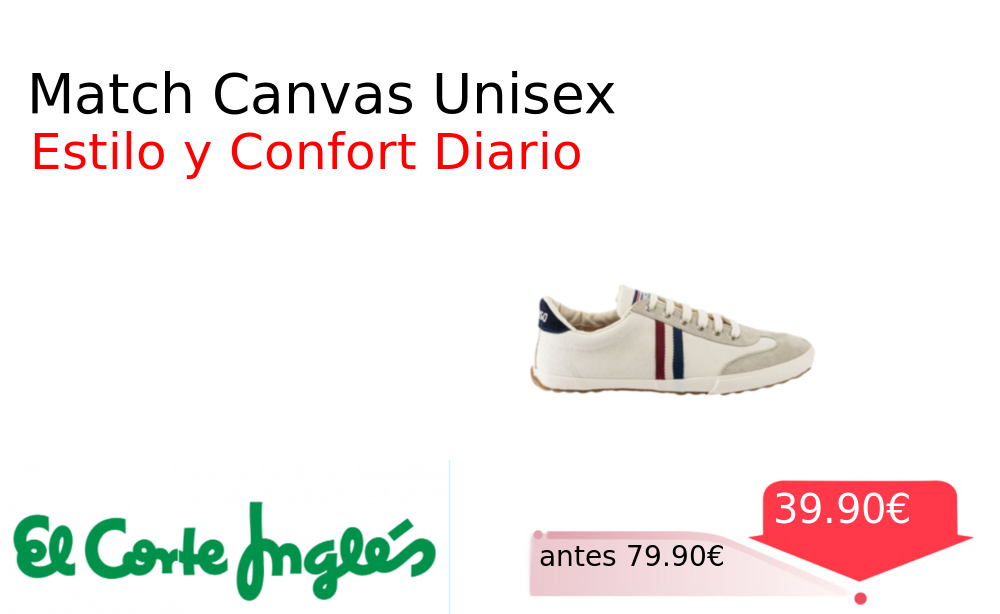 Mitad de precio✂️ Match Canvas Unisex❗️🆕 #Elcorteingles 📛Precio Ya 39.90€❗️ (PVP: +79.90€) ✨Zapatilla unisex fabricada en algodón canvas de alta calidad Suela de goma vulcanizada para mayor durabilidad y comodidad Diseño liso y versátil. cholloya.com/LG_MATCH_CANVAS