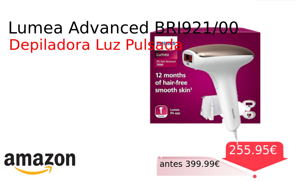 Más de un 30% 🚀 Lumea Advanced BRI921/00❗️🆕 #Amazon 🇪🇸 📛Precio Ya 255.95€❗️ (PVP: +399.99€) ✨Dispositivo de luz pulsada para depilación permanente en casa Incluye sensor de tono de piel dos cabezales para cuerpo y cara y un práctico. cholloya.com/PHILIPS_LUMEA_A
